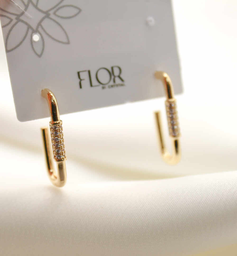 Brinco - Argola de Pino alongada lisa c/ detalhe cravejado