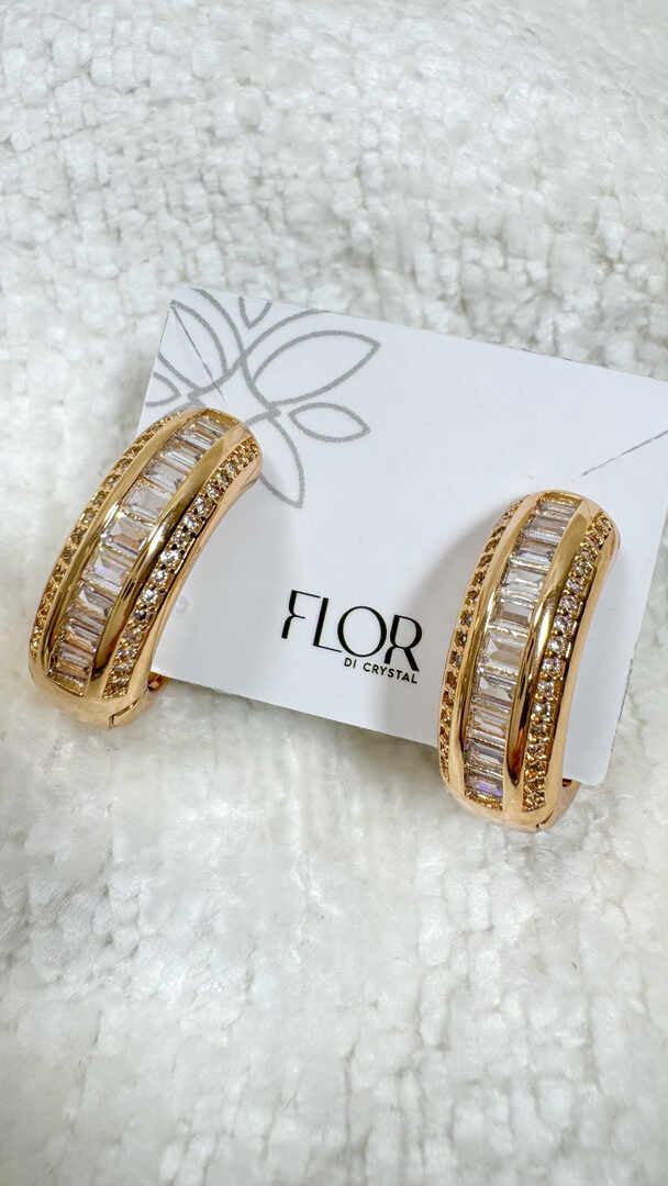 Brinco - Argola lisa larga com carreira Cravejada de Luxo