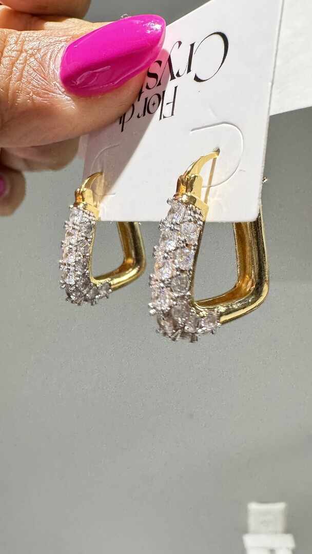 argola Triangular com detalhe cravejado-Com Rodio branco