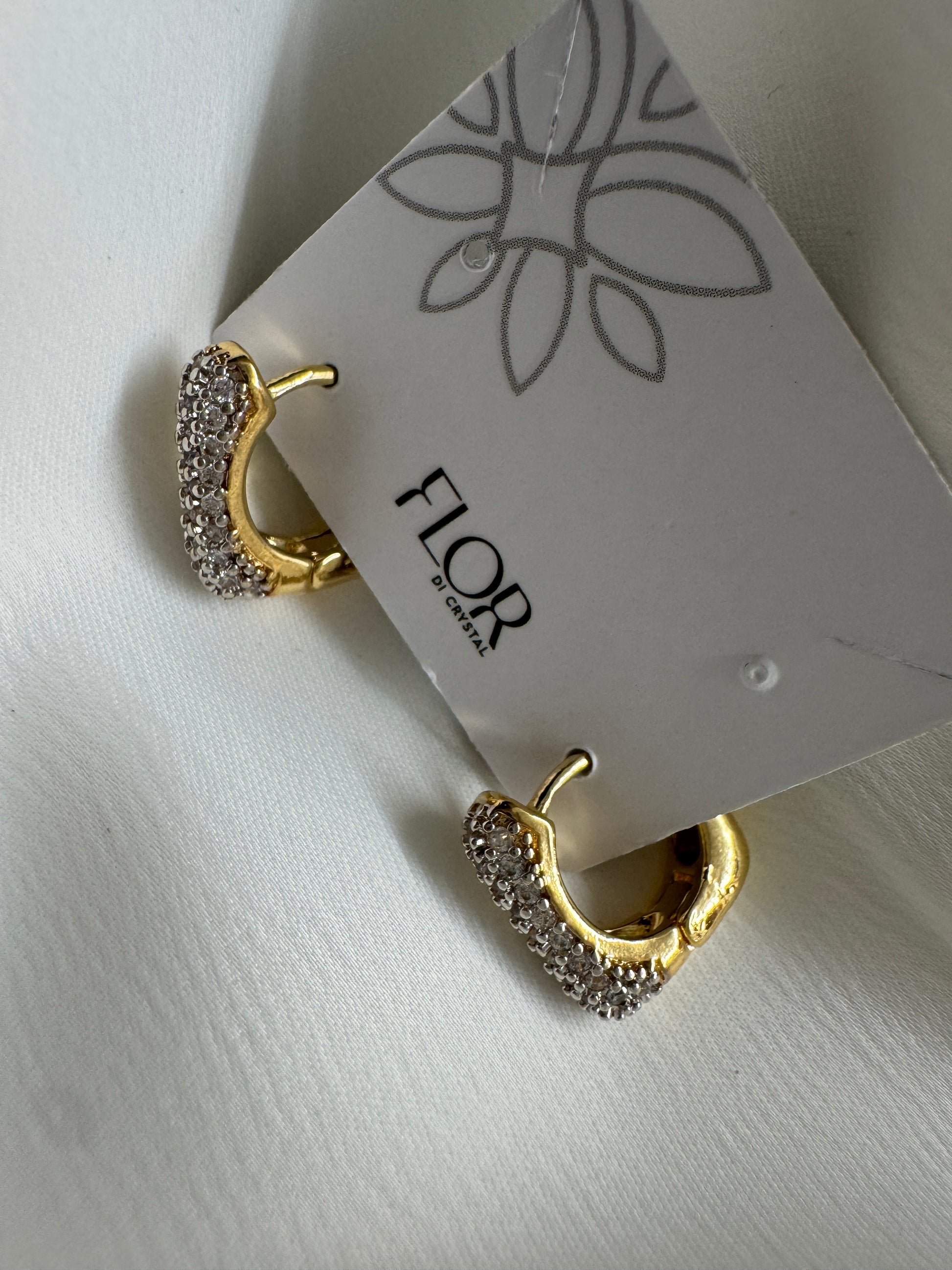 Argolas Cravejadas Luxo Maxi quadrada media - Gold com Rodio