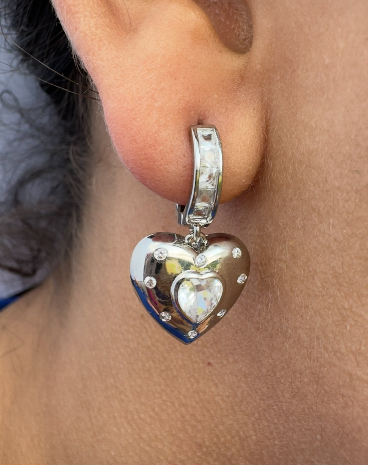 Brinco - brinco de argola -pingente de coracao com pontos de luz e Zirconia em fornato de coracao