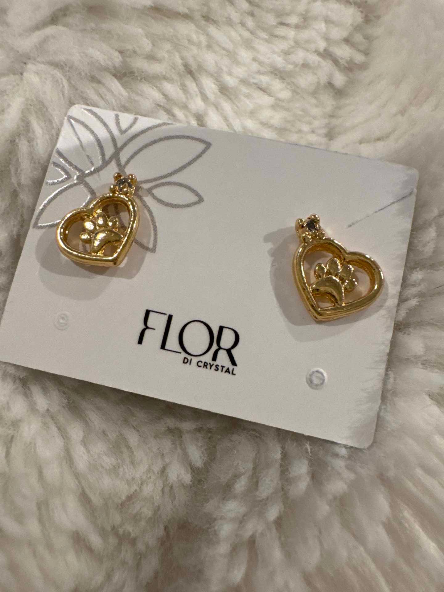 Brinco - Brinco de Coracao com Patinha de cachorro e ponto de luz