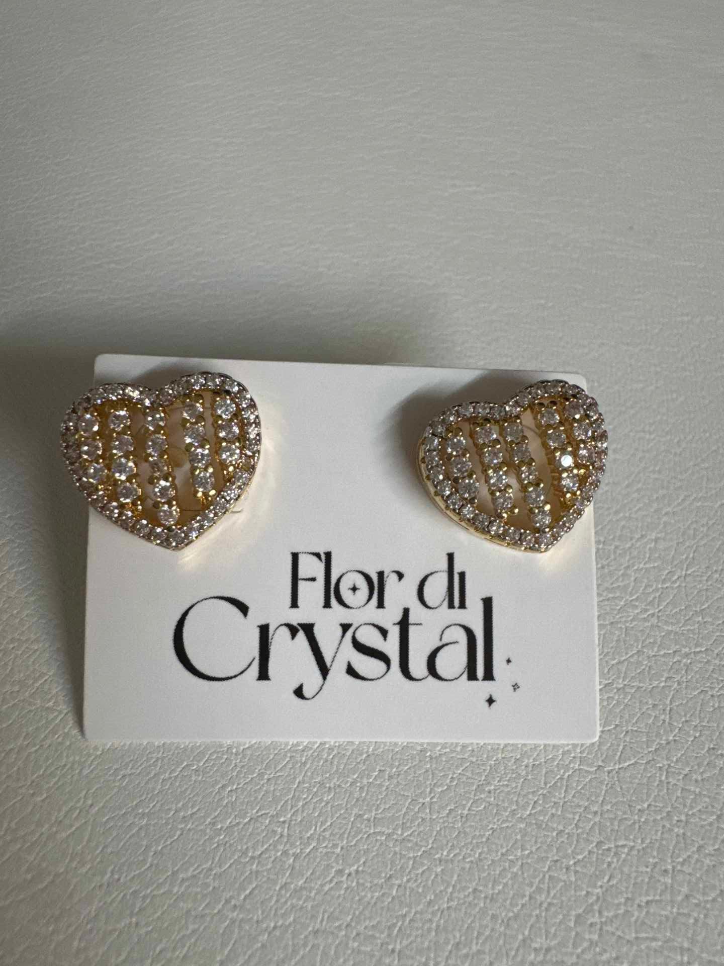 Brinco de coracao vasado cravejado com detalhe em Rodio