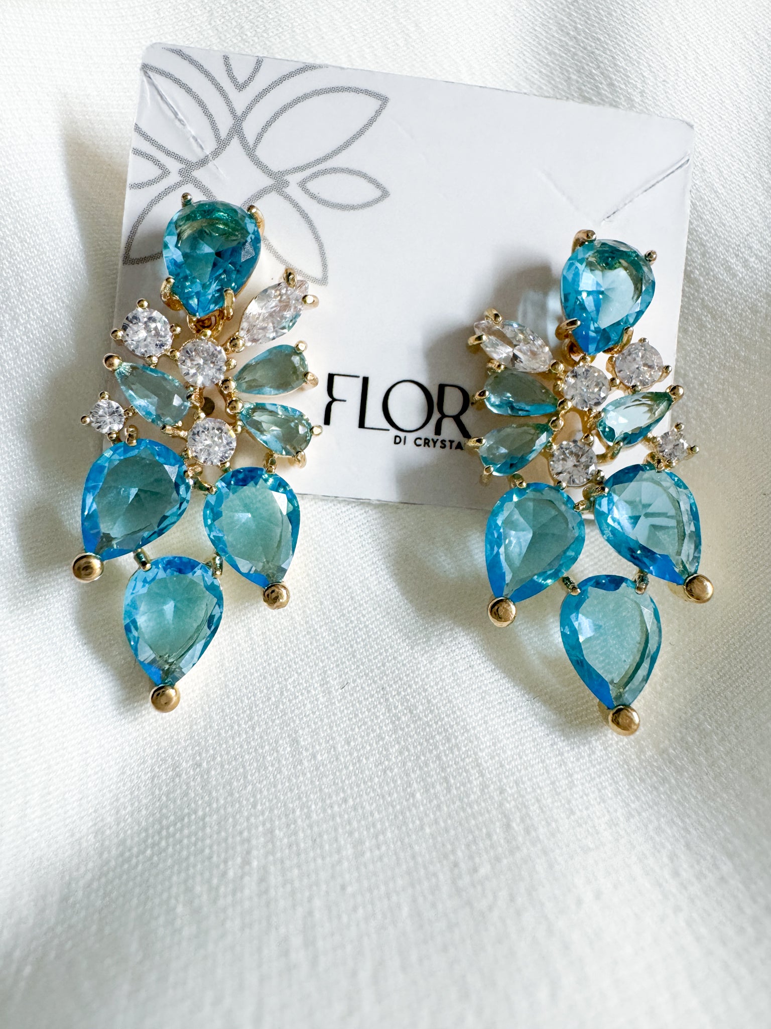 Brinco - Brinco de Cravejado cristal e azul piscina