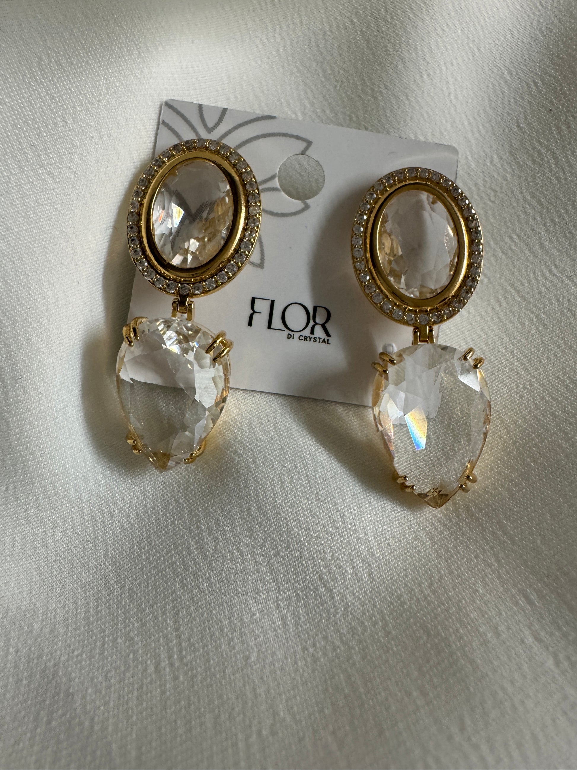 Brinco de Cravejado de Cristal Oval detalhe liso