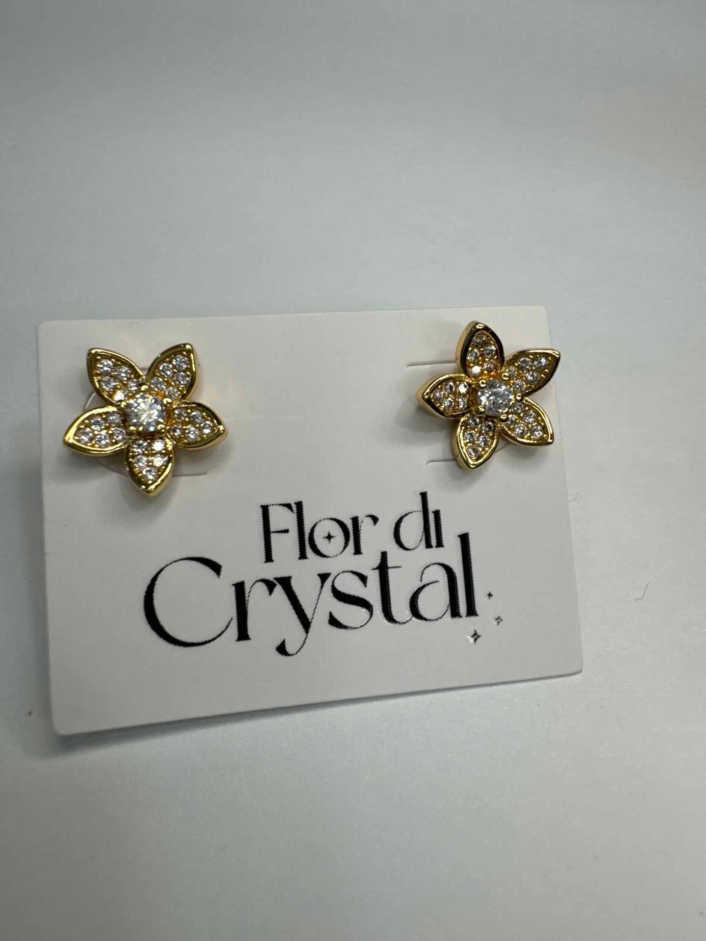Brinco de Flor Microcravejado e zirconia no meio cristal