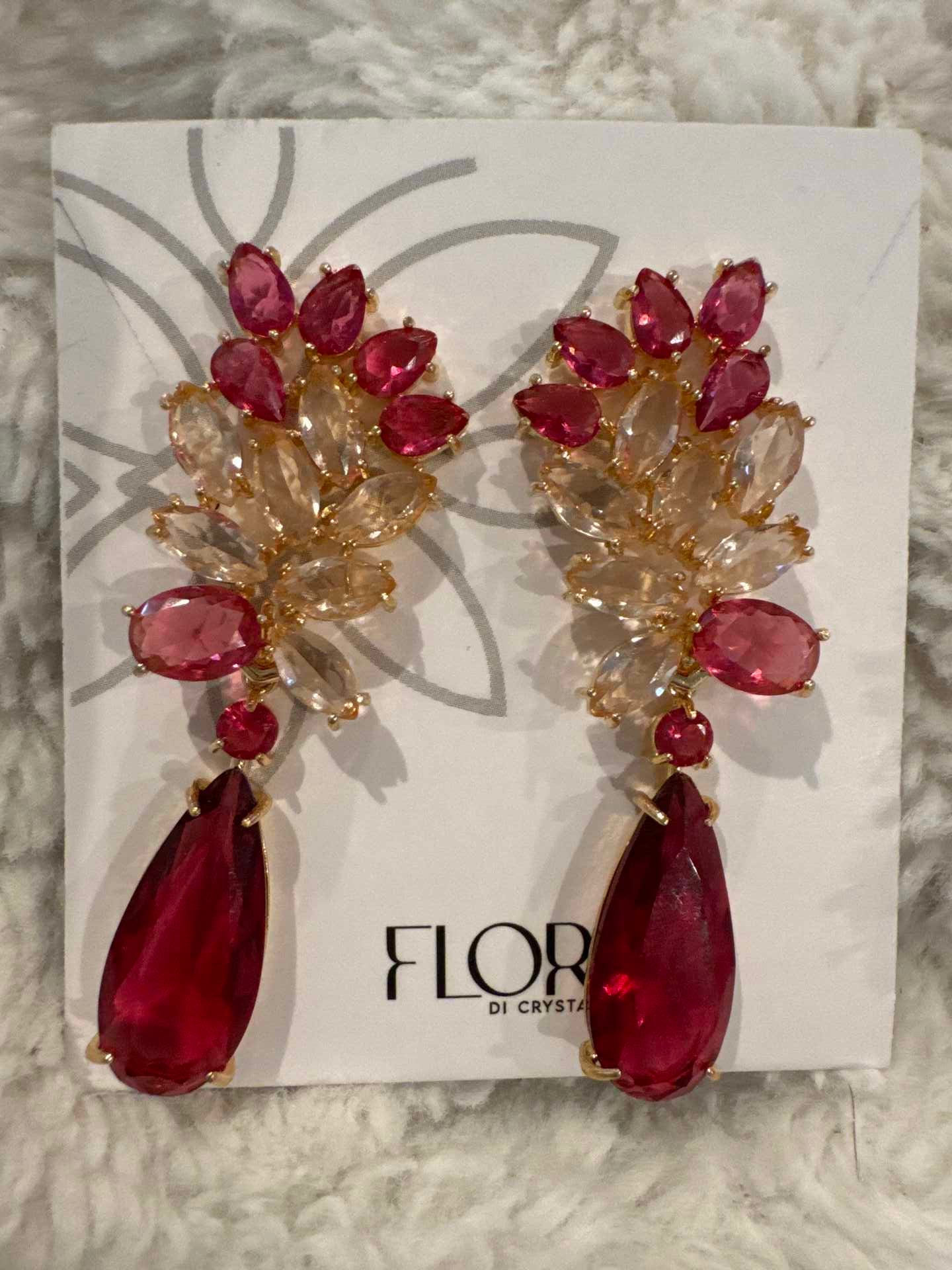 Brinco - Brinco de Pedra Zirconias Vermelo com Morganita