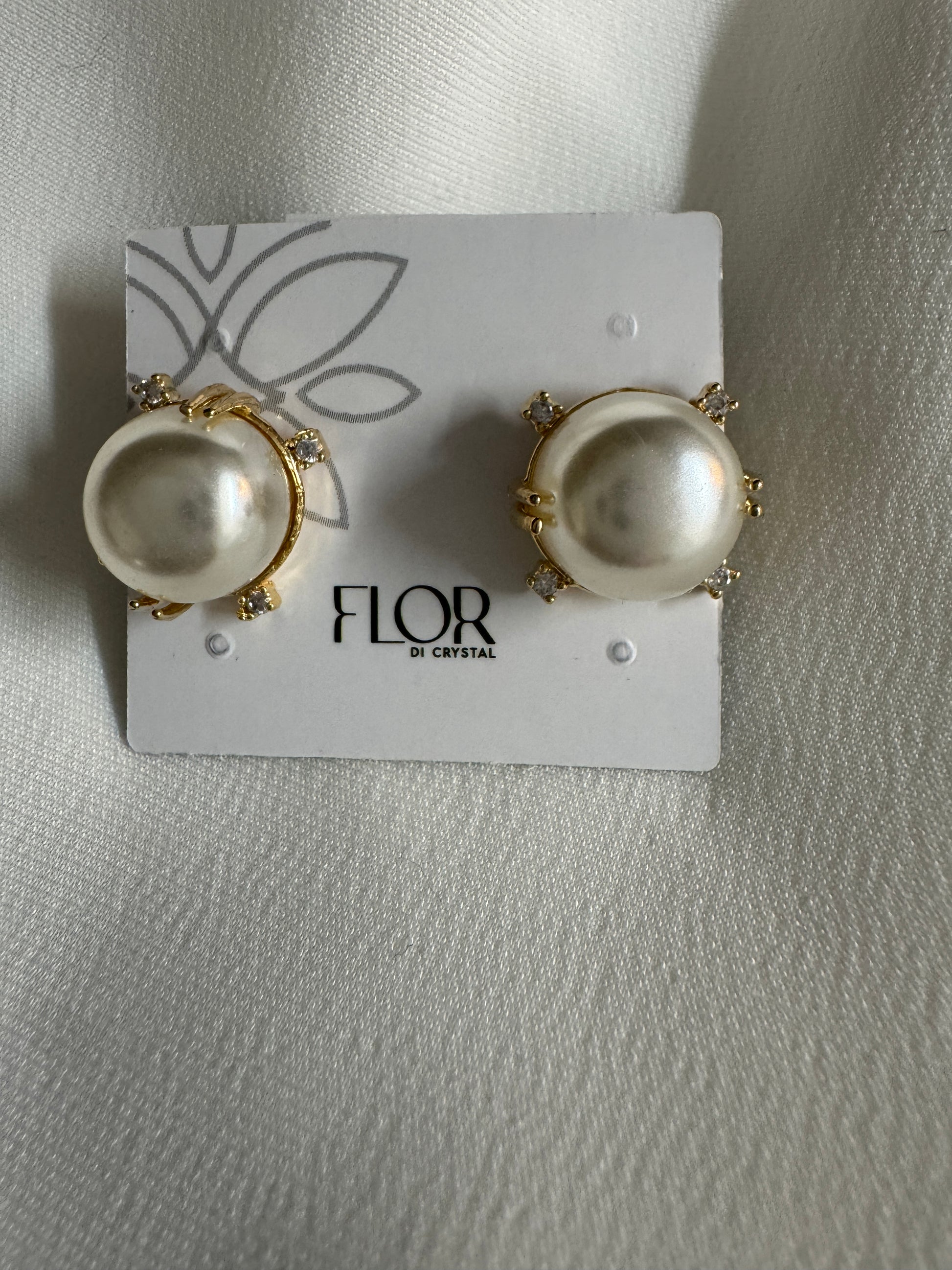 Brinco - Brinco de perola classico com detalhe em zirconias- pequeno
