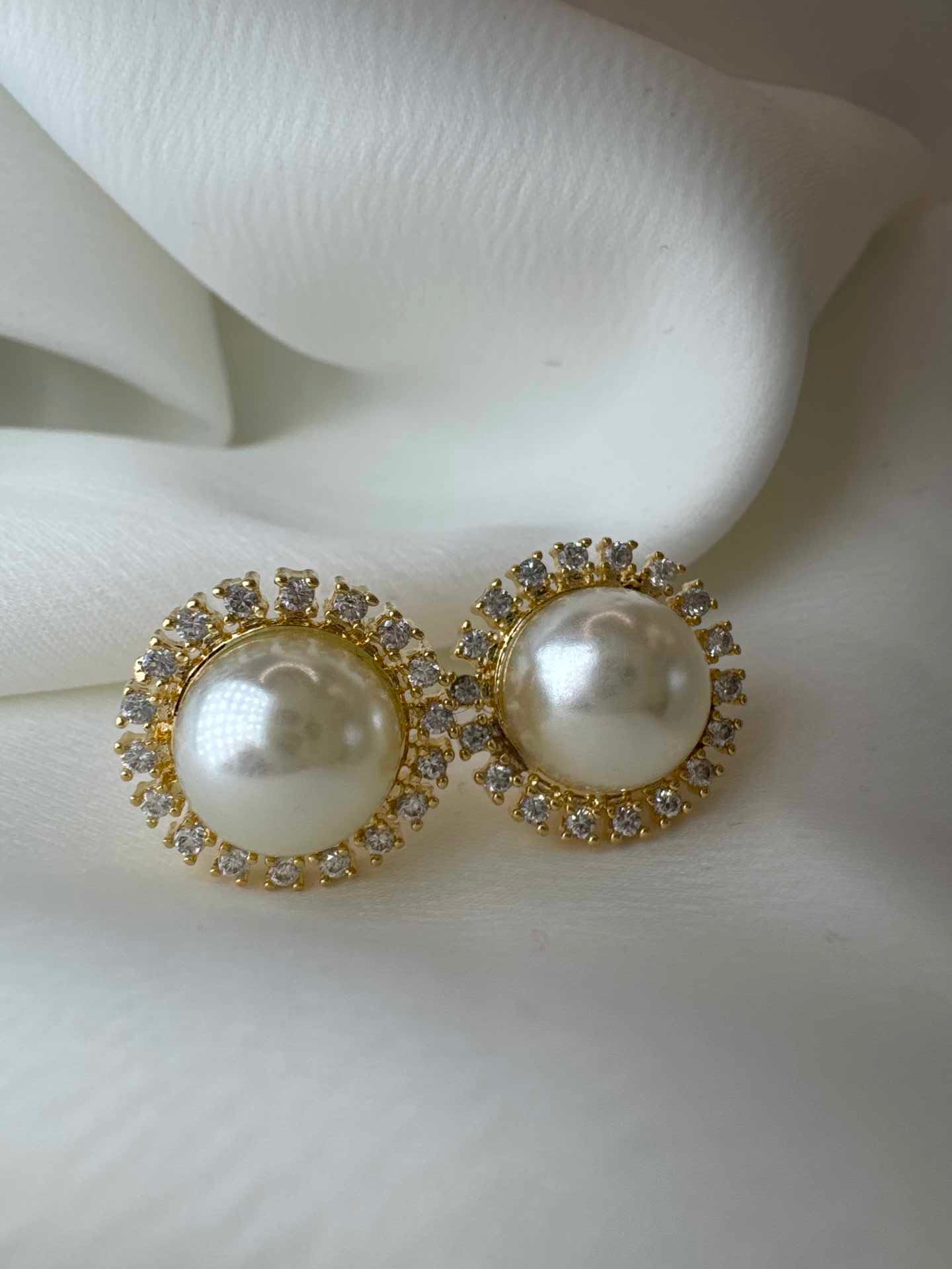 Brinco - Brinco de perola classico com detalhe em zirconias- pequeno