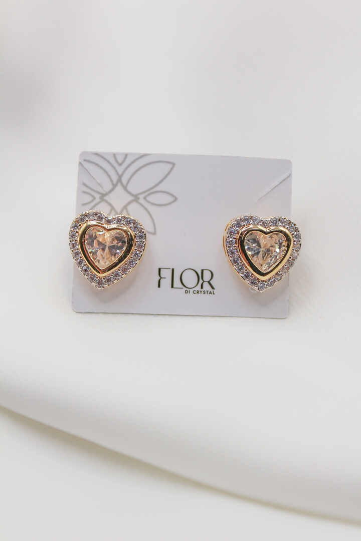 Brinco de zirconia corte em Coracao cristal e cravejado