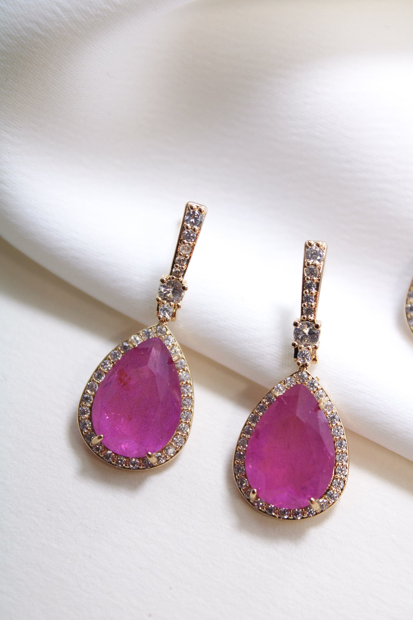 Brinco - Brinco Gota em Turmalina Pink e cravejado