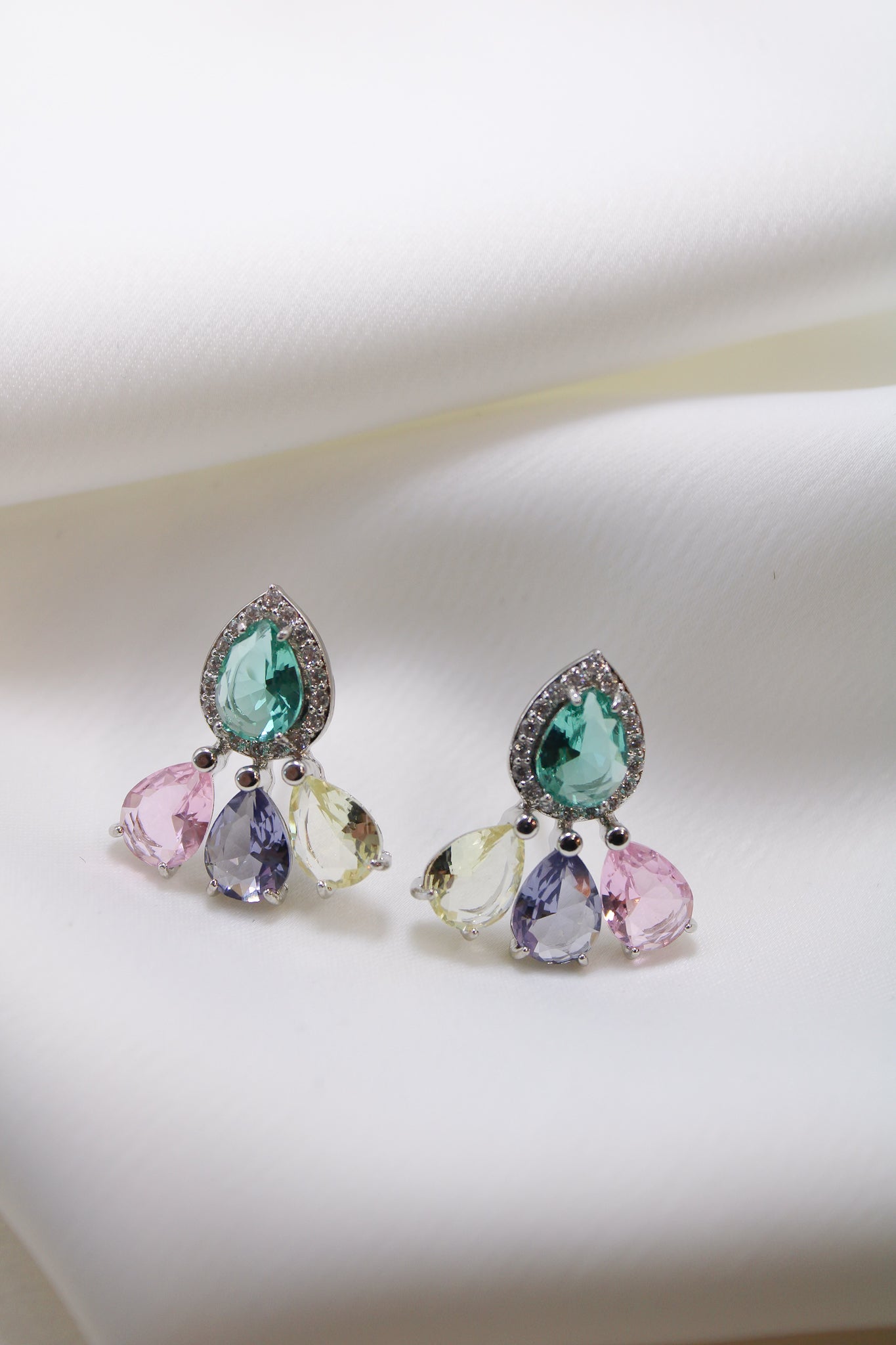 Brinco oval Colorido com gota verde