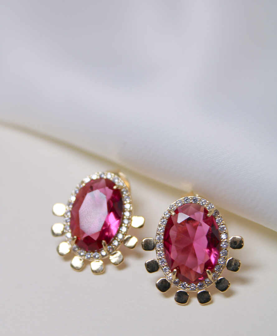 Brinco - Brinco oval fuchia em petalas e cravejada