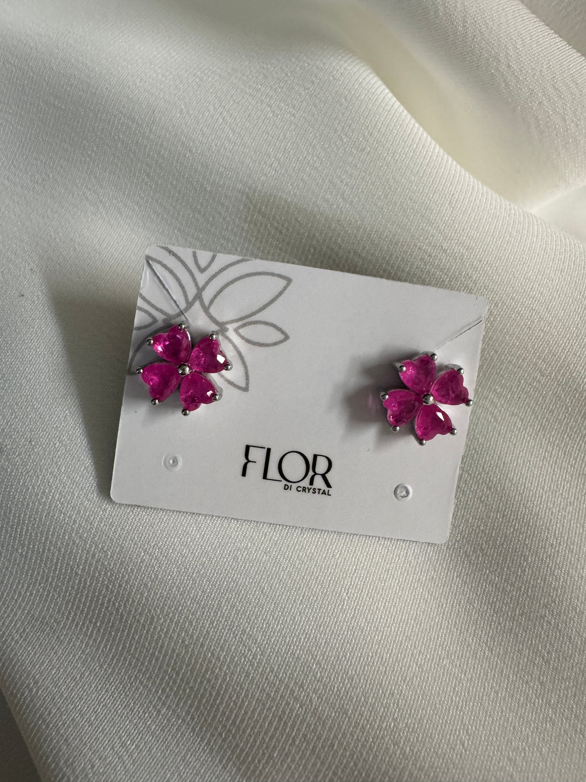Brinco ponto de luz em flor Mini Turmalina - fuchia
