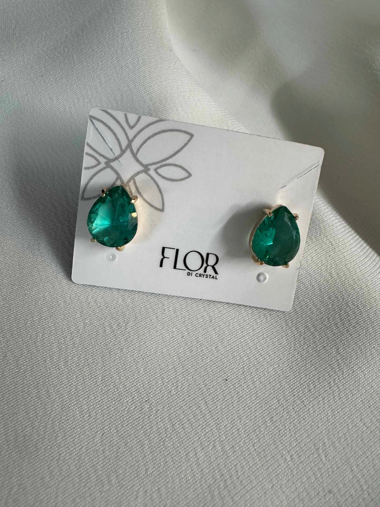 Brinco ponto de luz gota em esmeralda