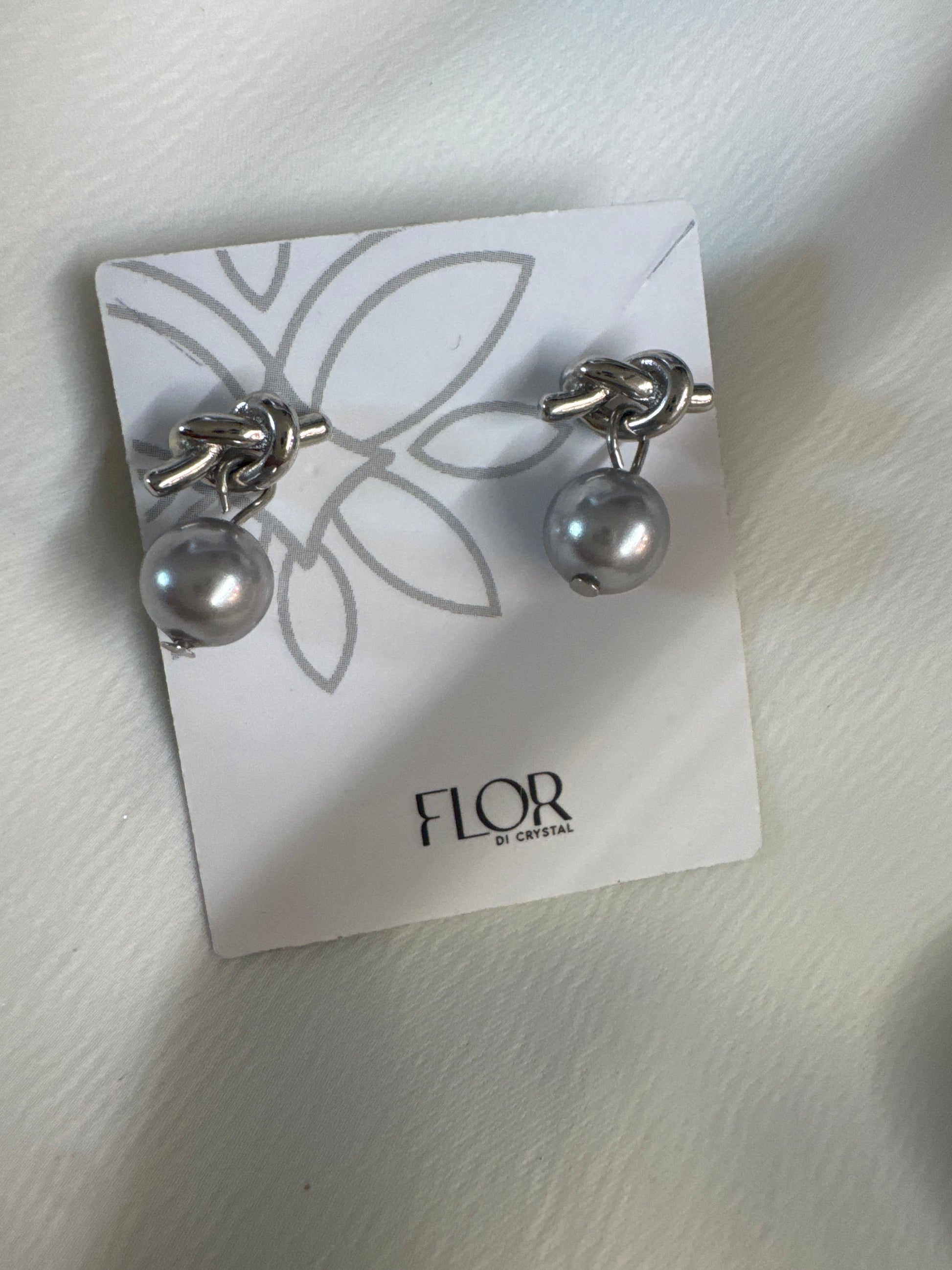 Brinco - Brinco torcido com pingente de perola cinza -rodio