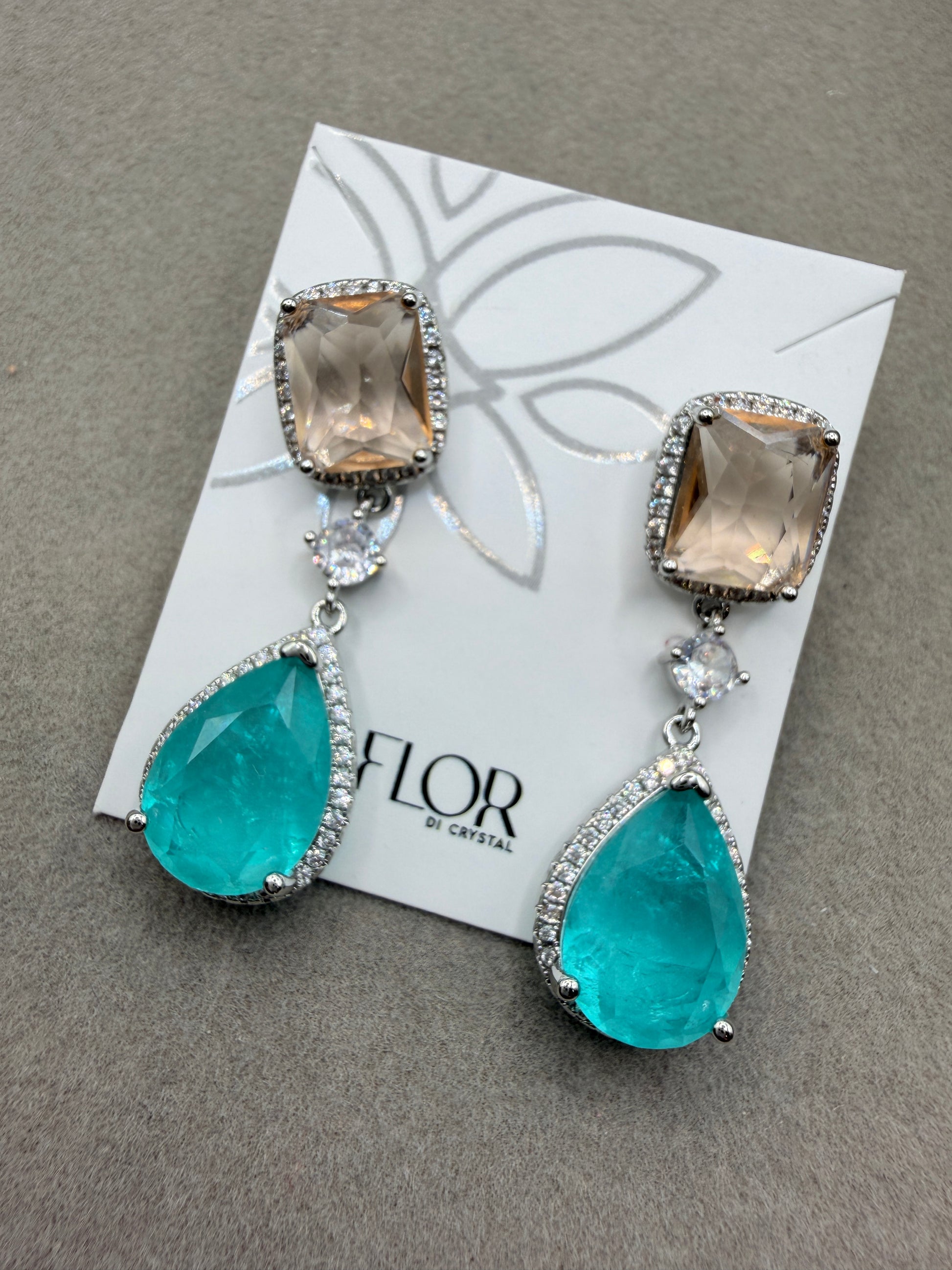 Brinco Zirconia Citrino e pedra Verde Fusion