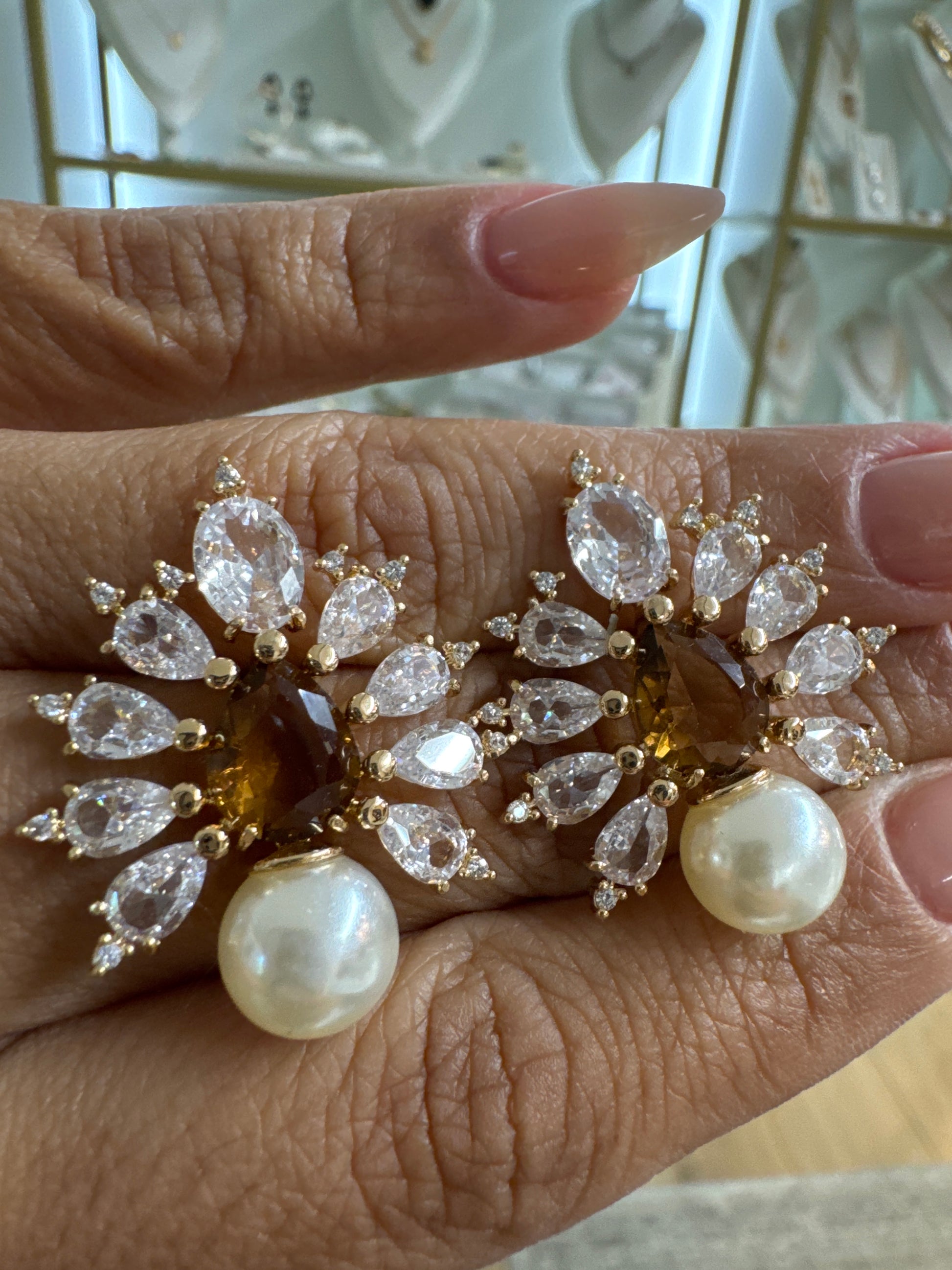 Brinco - Brunco de Flor cristal Cravejada com Perola