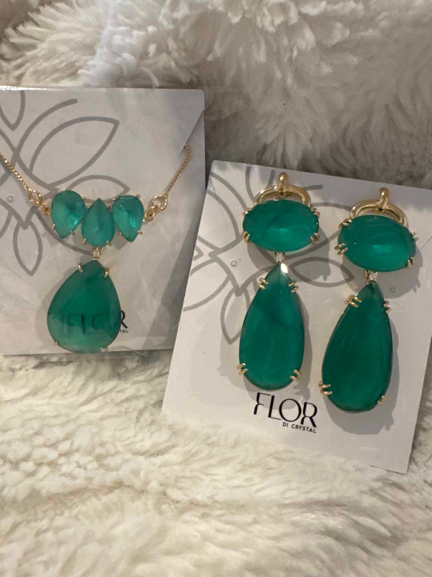 Conjunto de colar e Brinco de Gota turmalina esmeralda