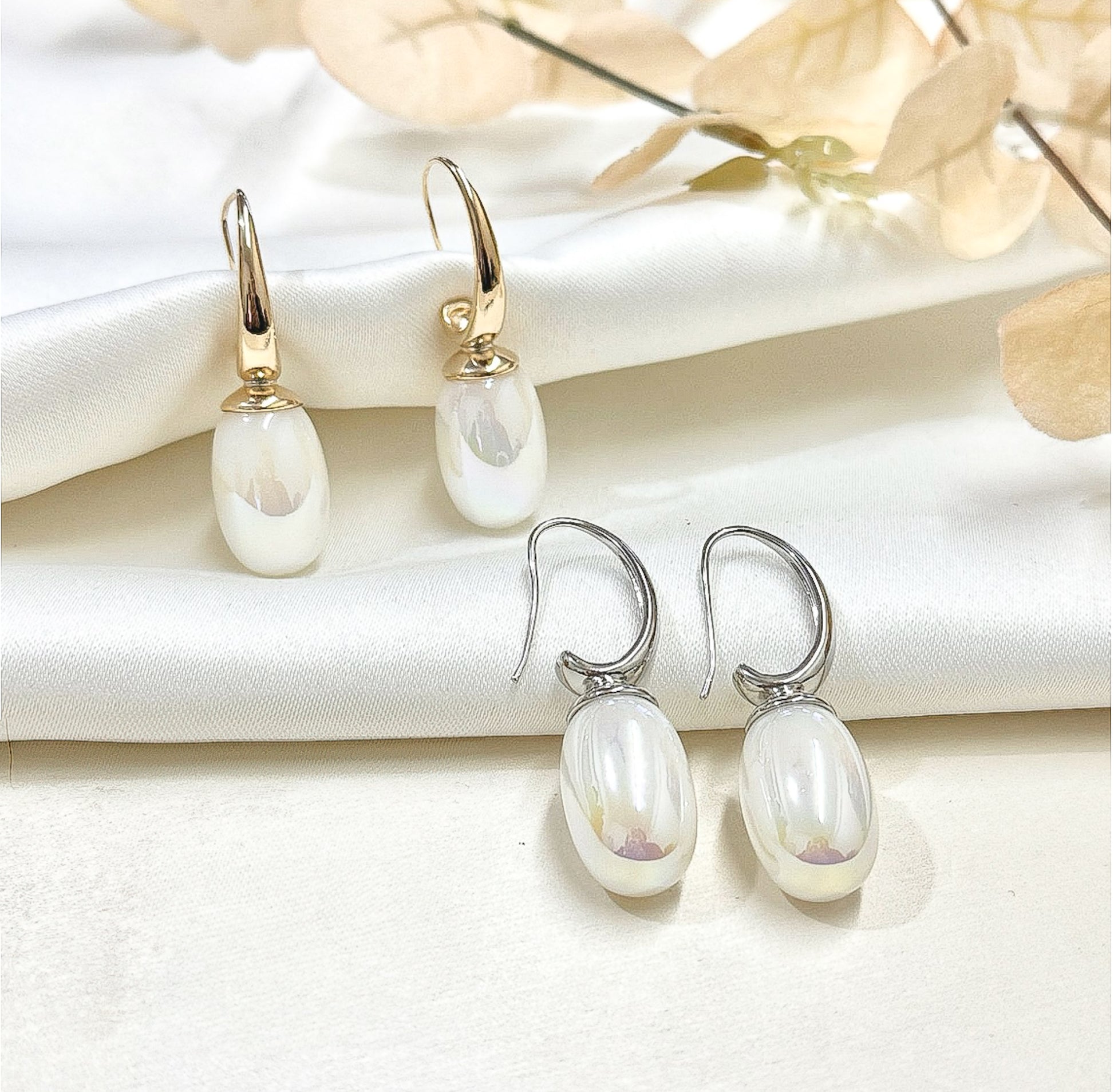 Brinco - Brinco de argola em perola Alongada DOURADO