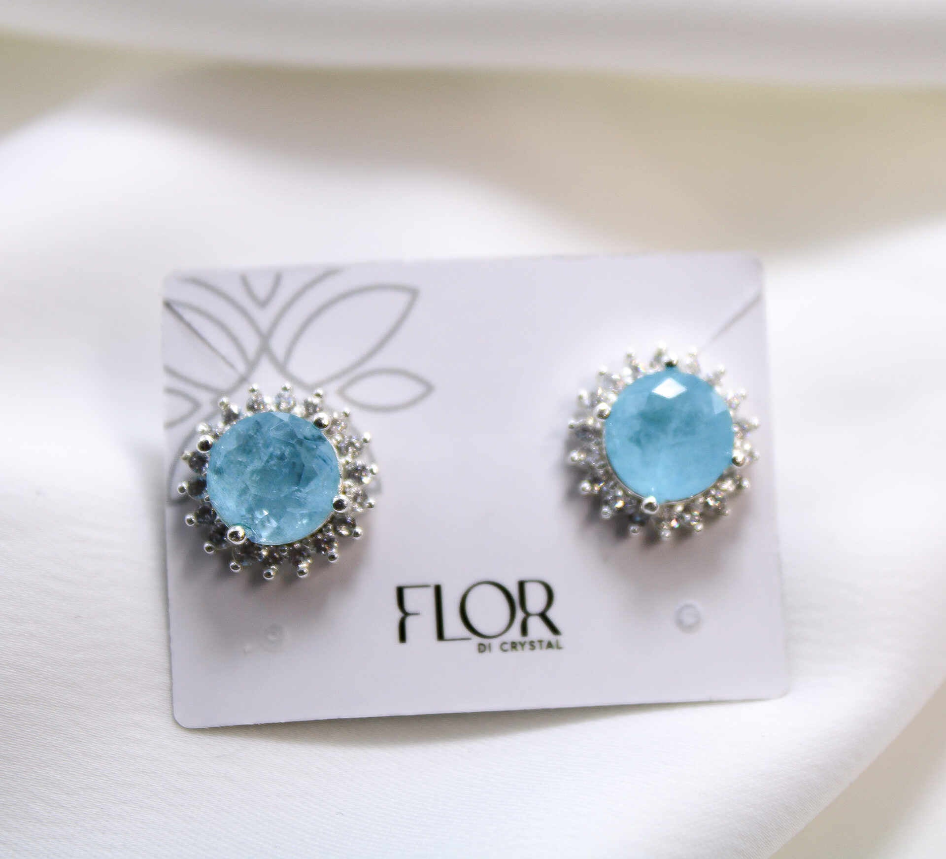 Brinco redondo cravejado de zirc. com pedra fusion -azul agua