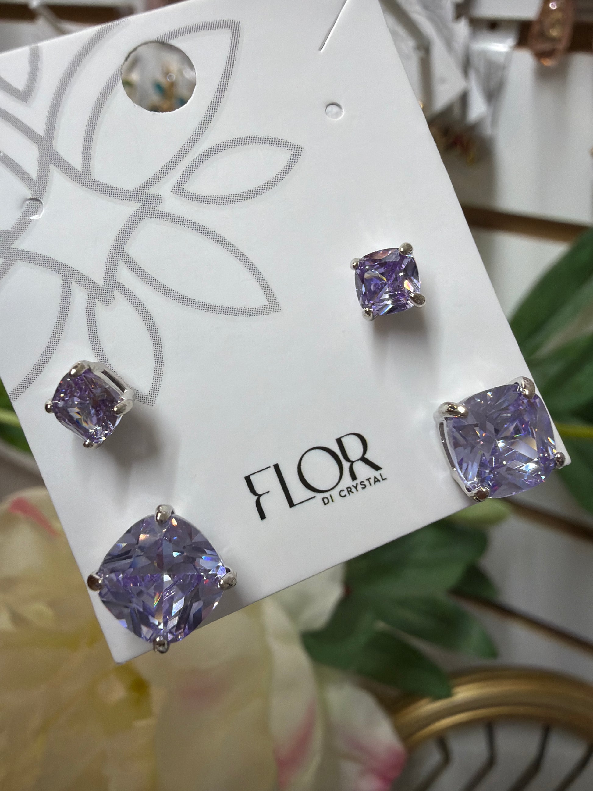 Brinco - Duo lilaz Banho Ródio