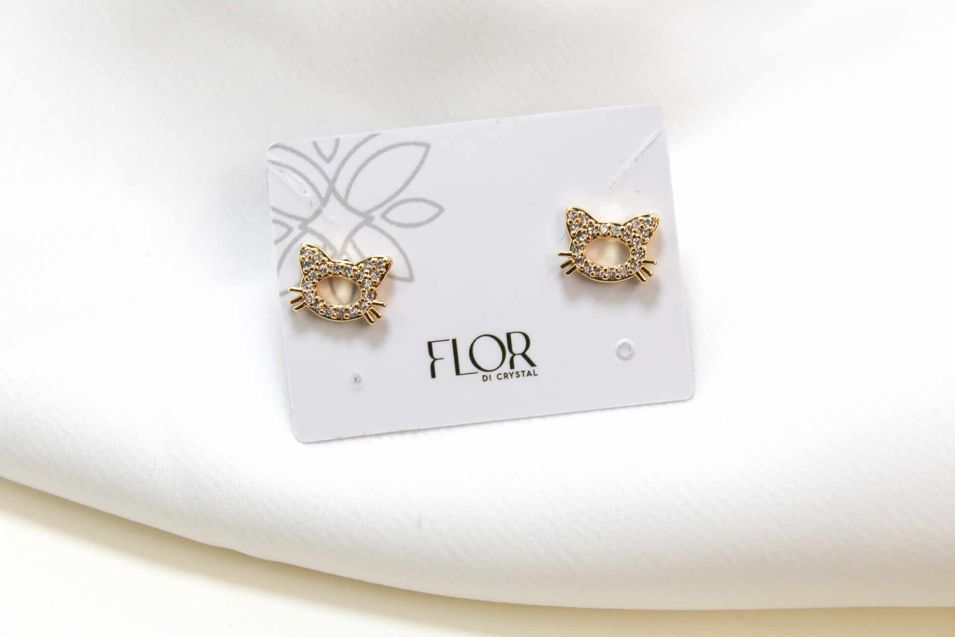 Dupla de brinco de Gatinho cravejada e ponto de luz -kids