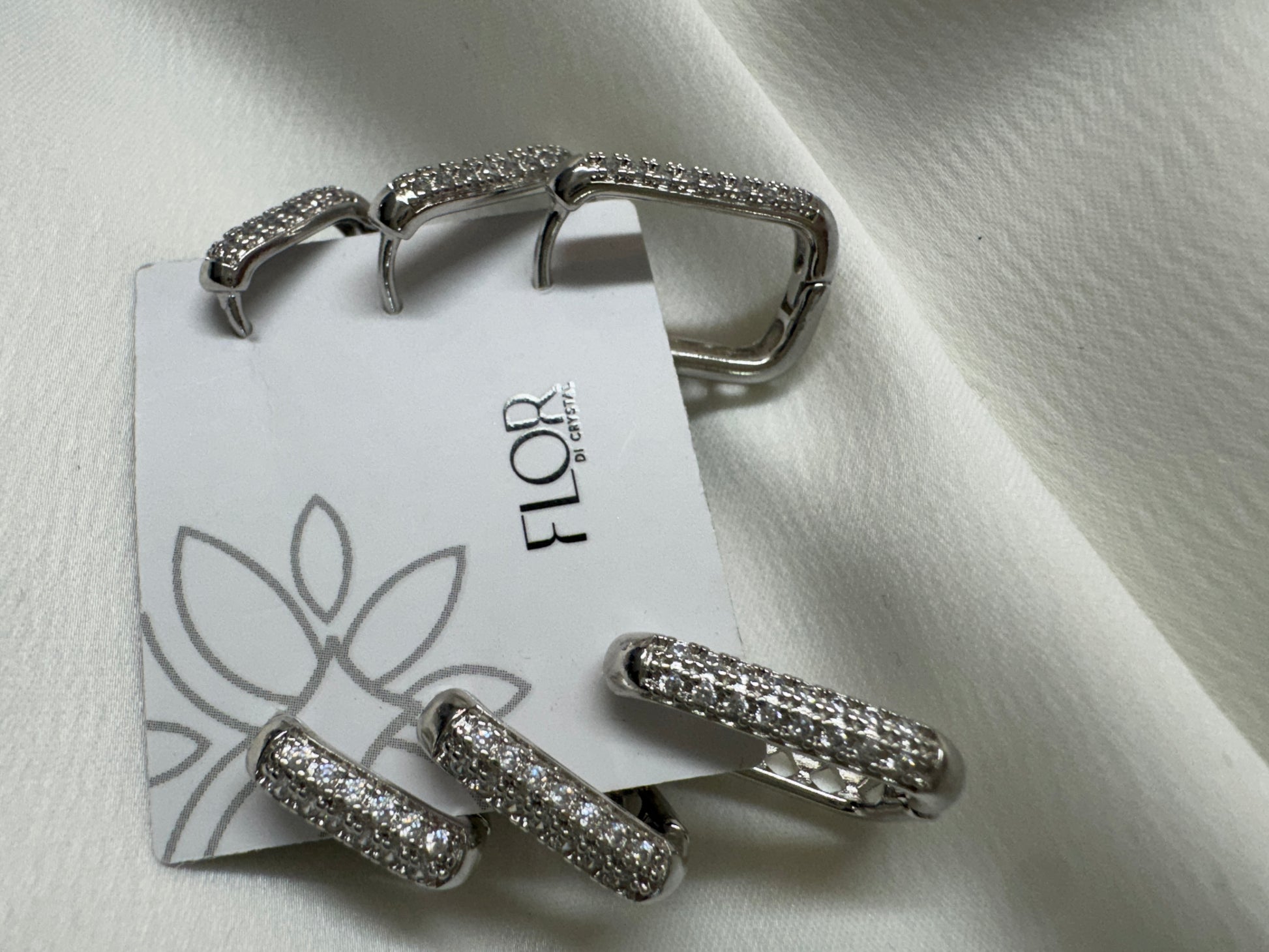 Trio Argolas Cravejadas Luxo de quadrado- rodio