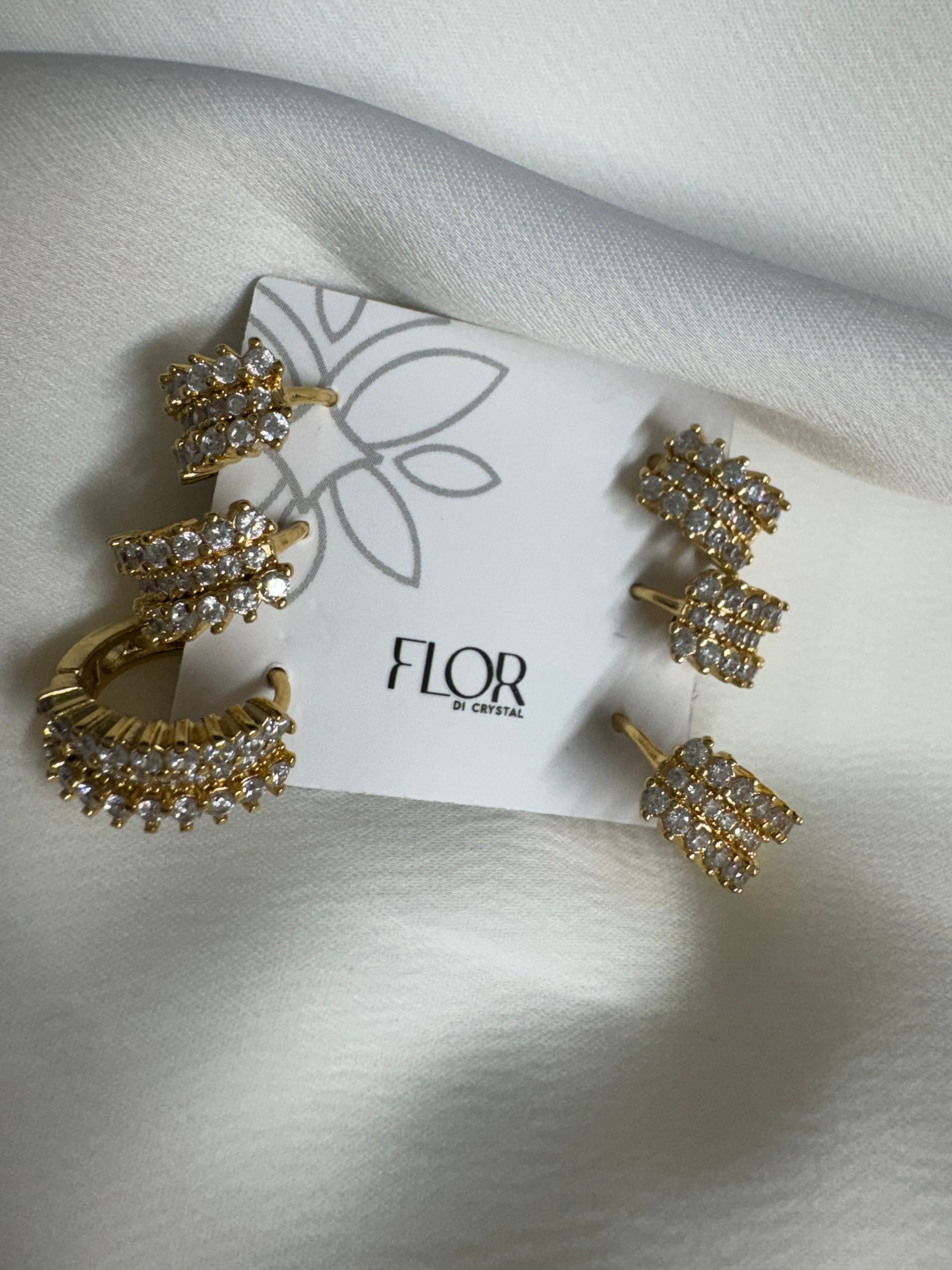 Brinco - Trio Argolas Cravejadas Luxo - Gold