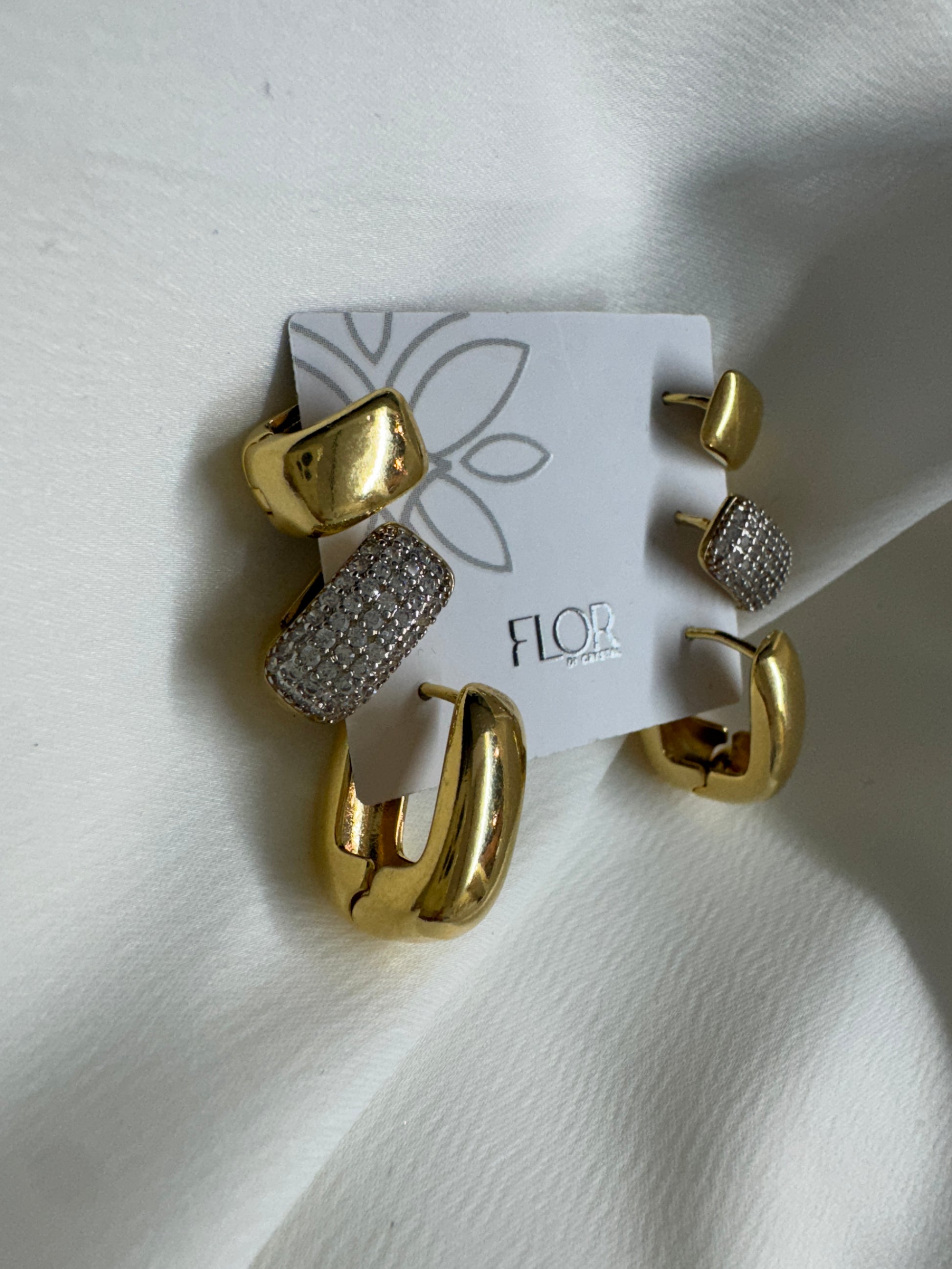 Trio Argolas Cravejadas Luxo Maxi - Gold com Rodio Alongado