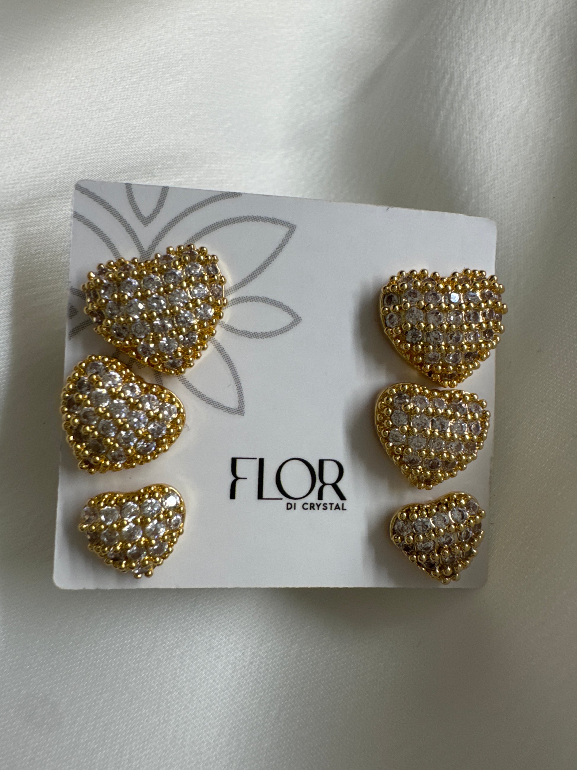 Brinco - Trio Brincos de coracao cravejado - Gold