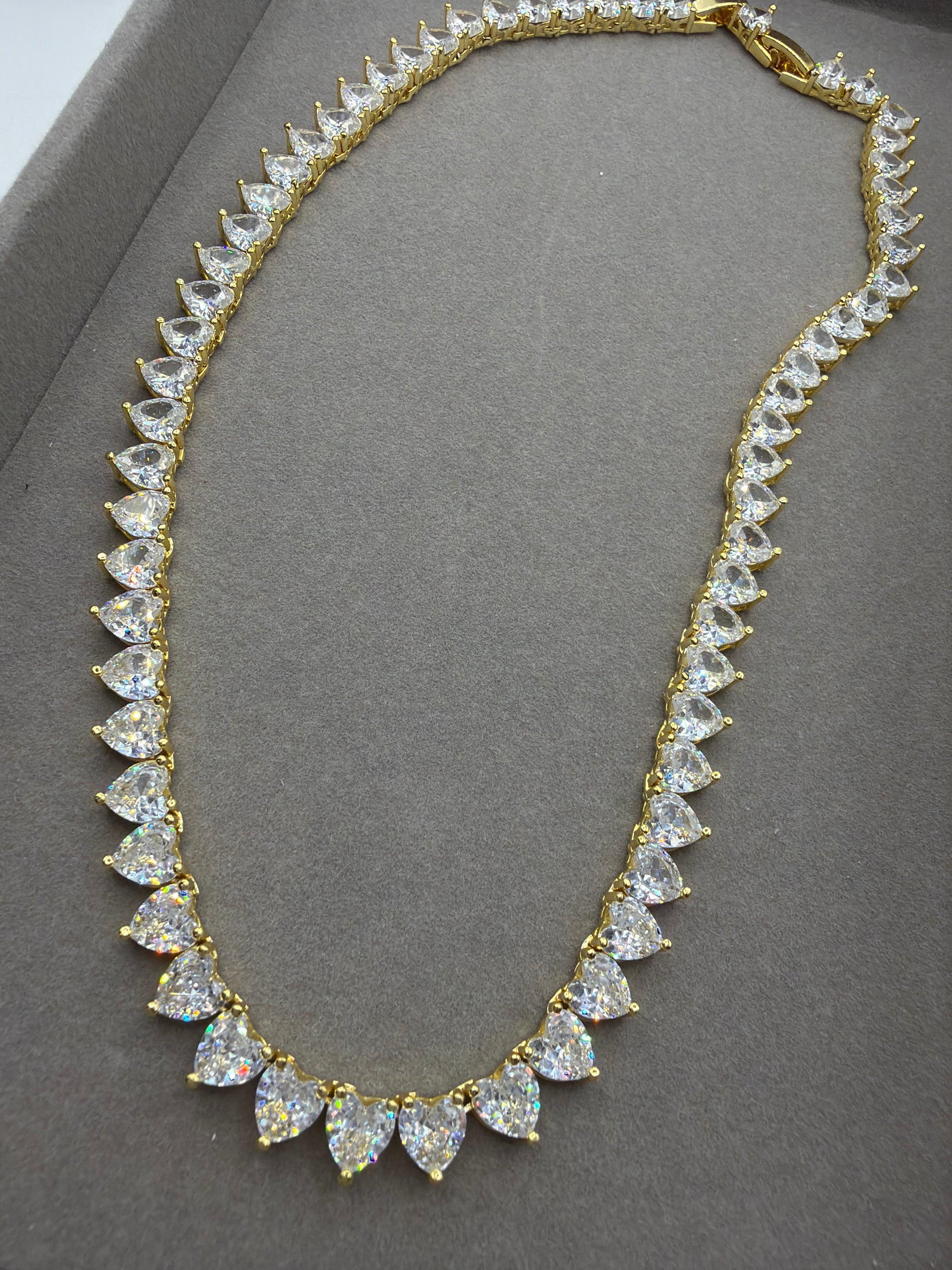 Rivieira 6mm de coracao cristal em banho gold - 16in