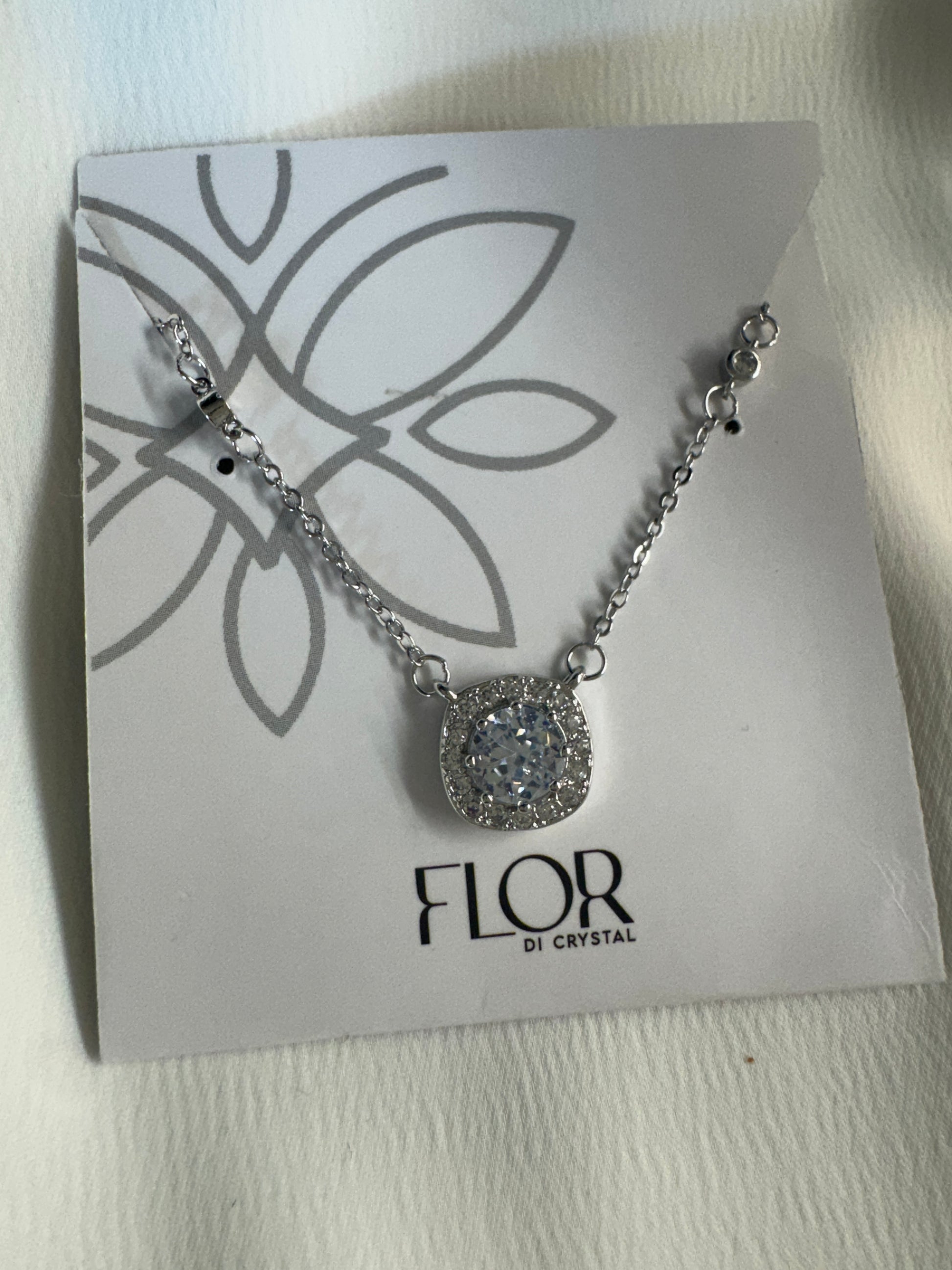 Colar ponto de Luz quadrado com zirconias ao redor-rodio