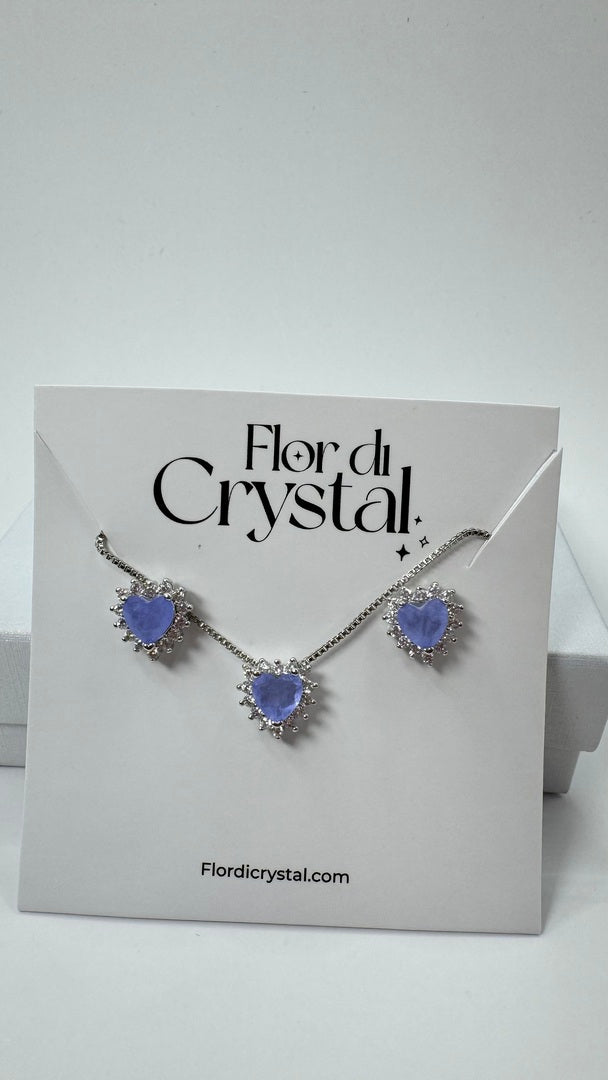 Conjunto - conjunto coracao pequeno cravejado e pedra fusion- LilazLuxo
