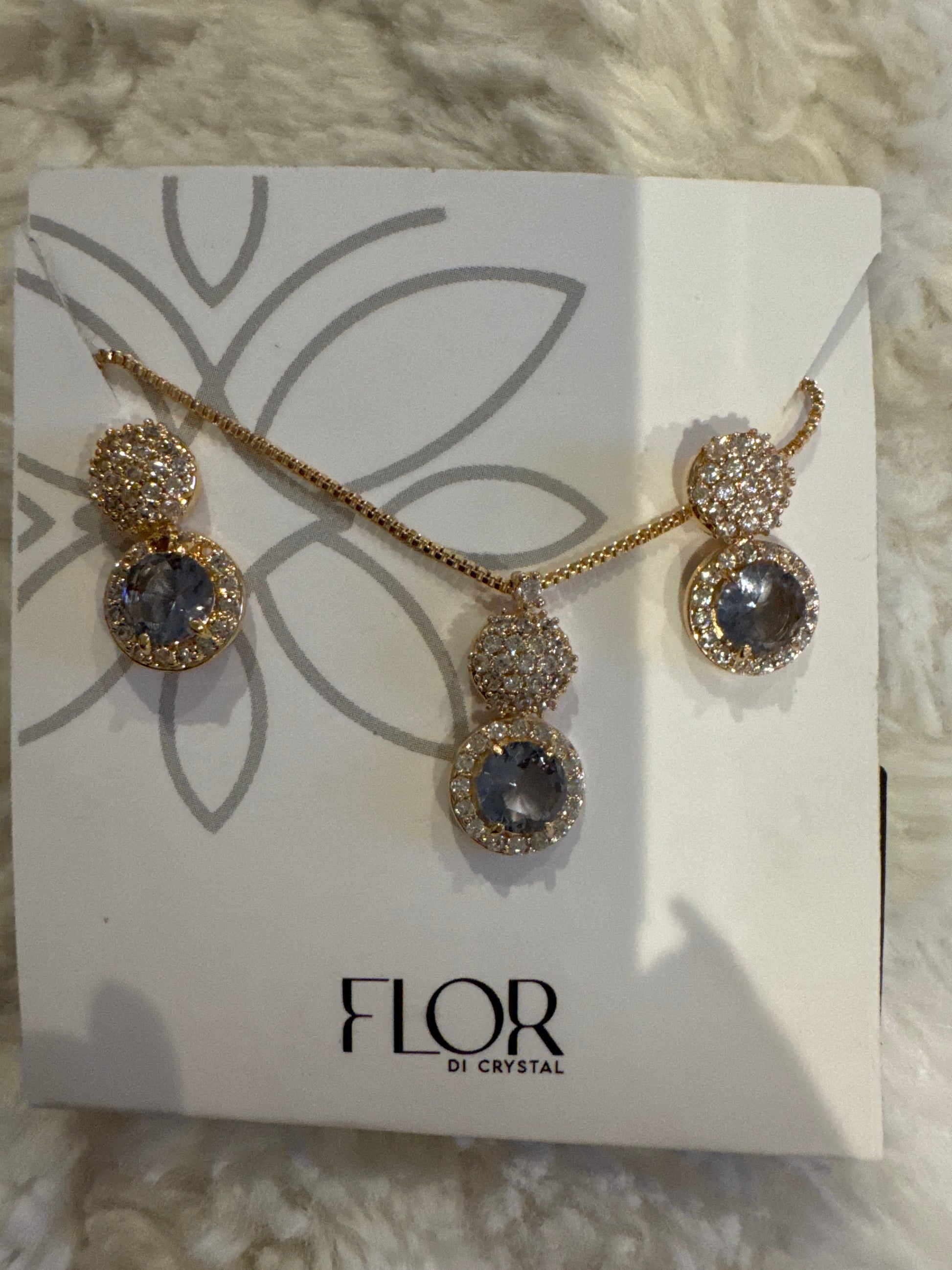 Conjunto de brinco e colar - cravejado com pedra ametista