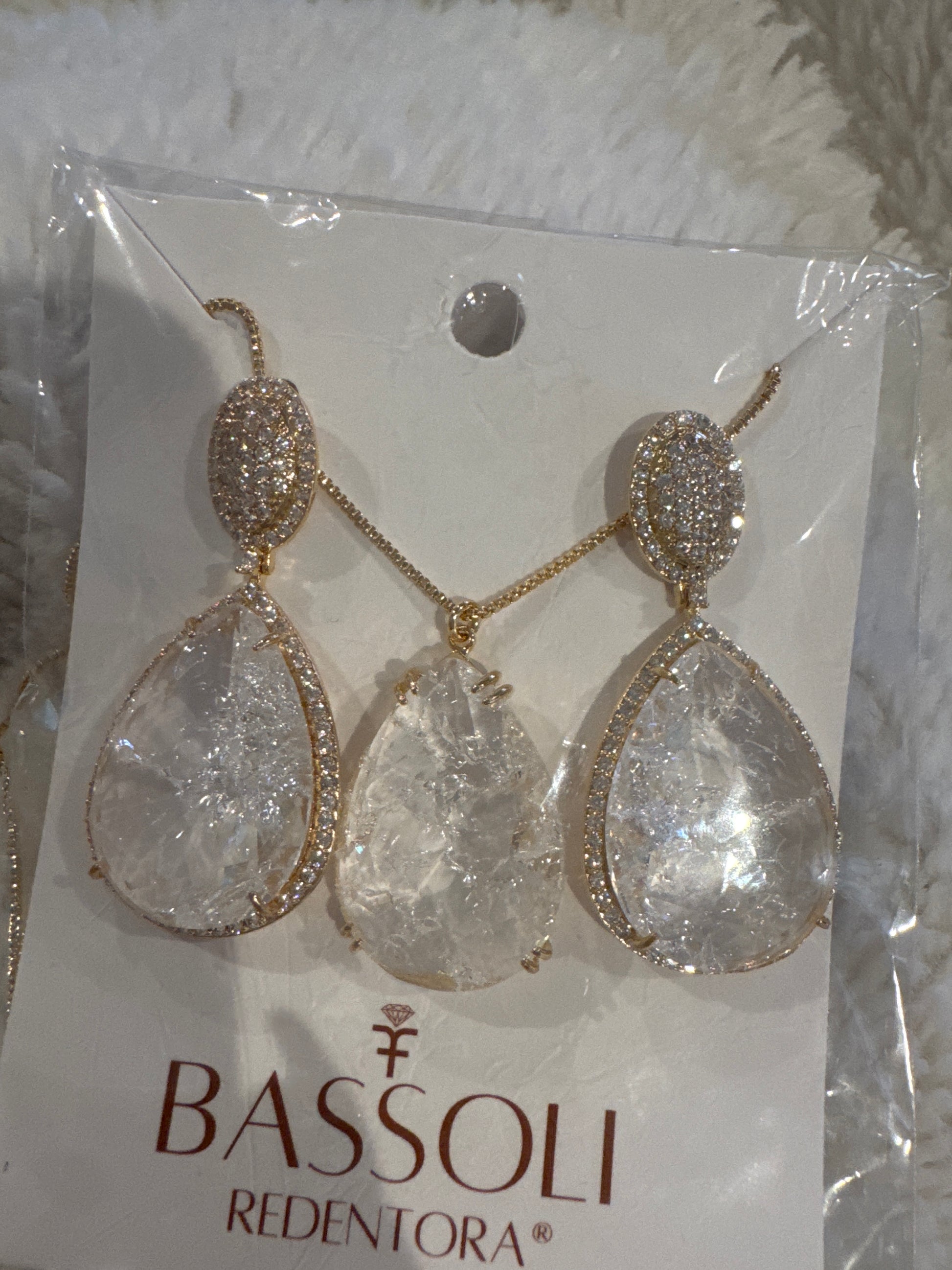 Conjunto - conjunto de brinco e colar de gota Cristal grande luxo