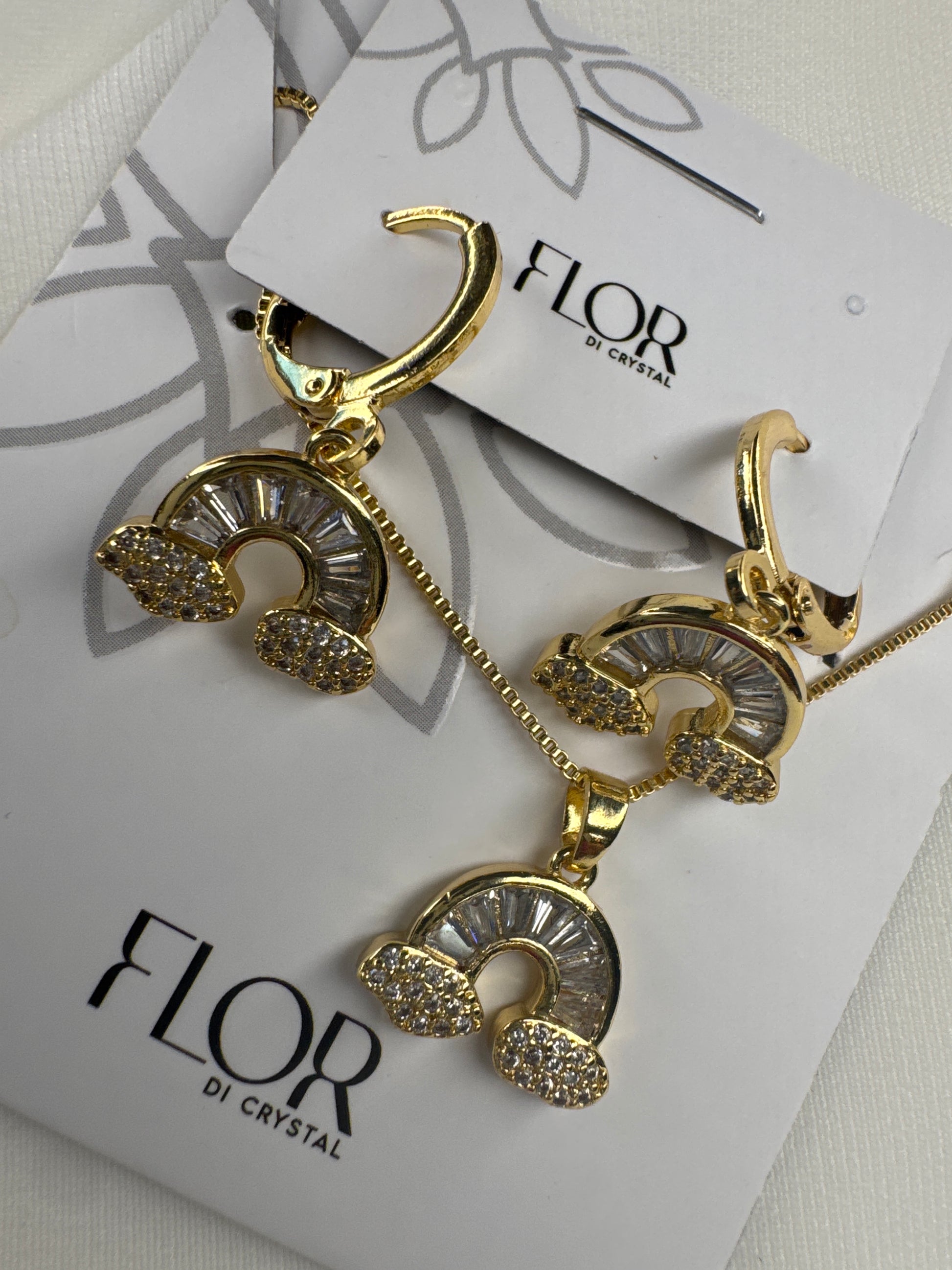 Conjunto - Conjunto delicado de arco-iris cravejado