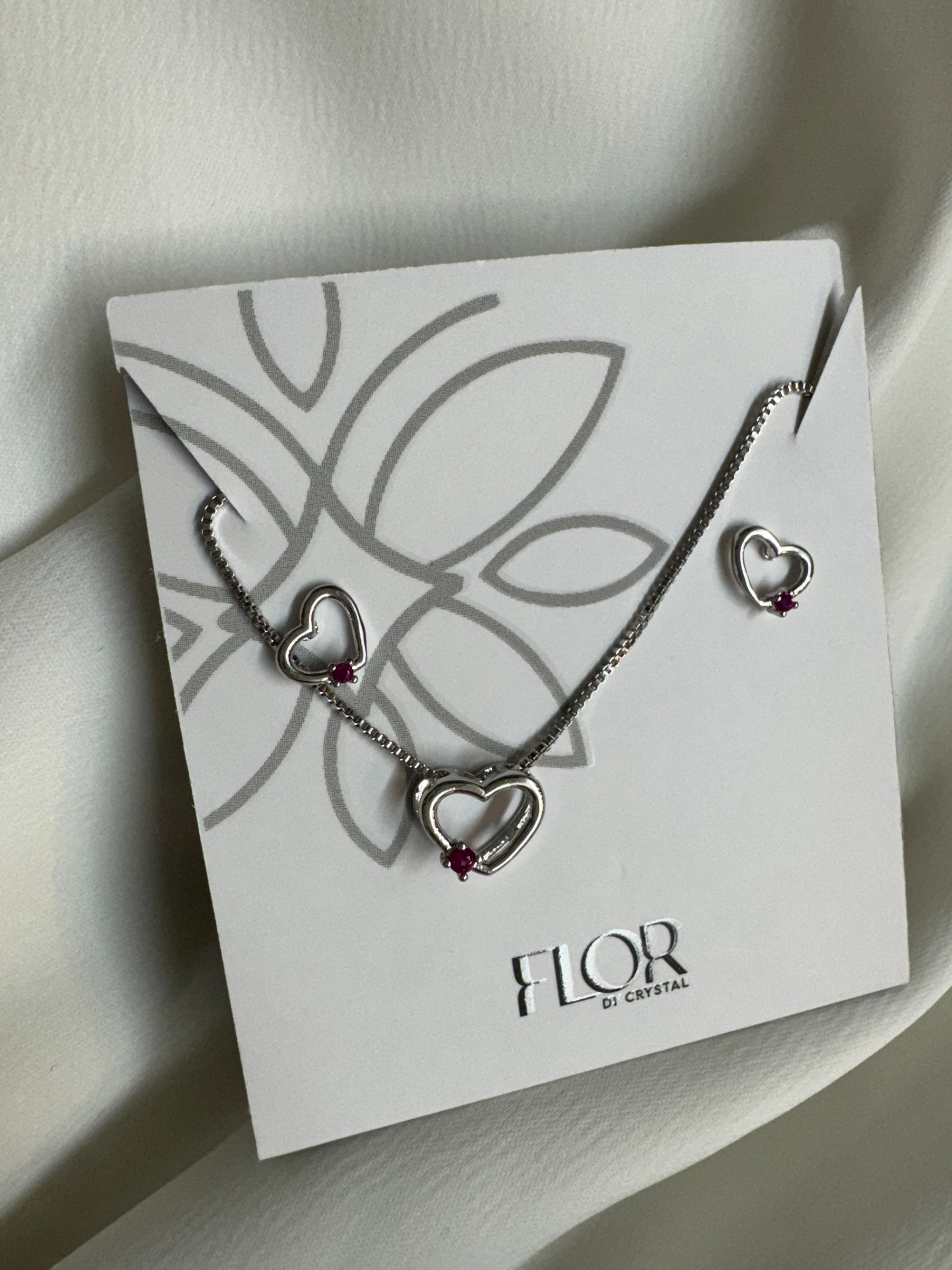 Conjunto delicado de coracao vasado cravejado -ROSA