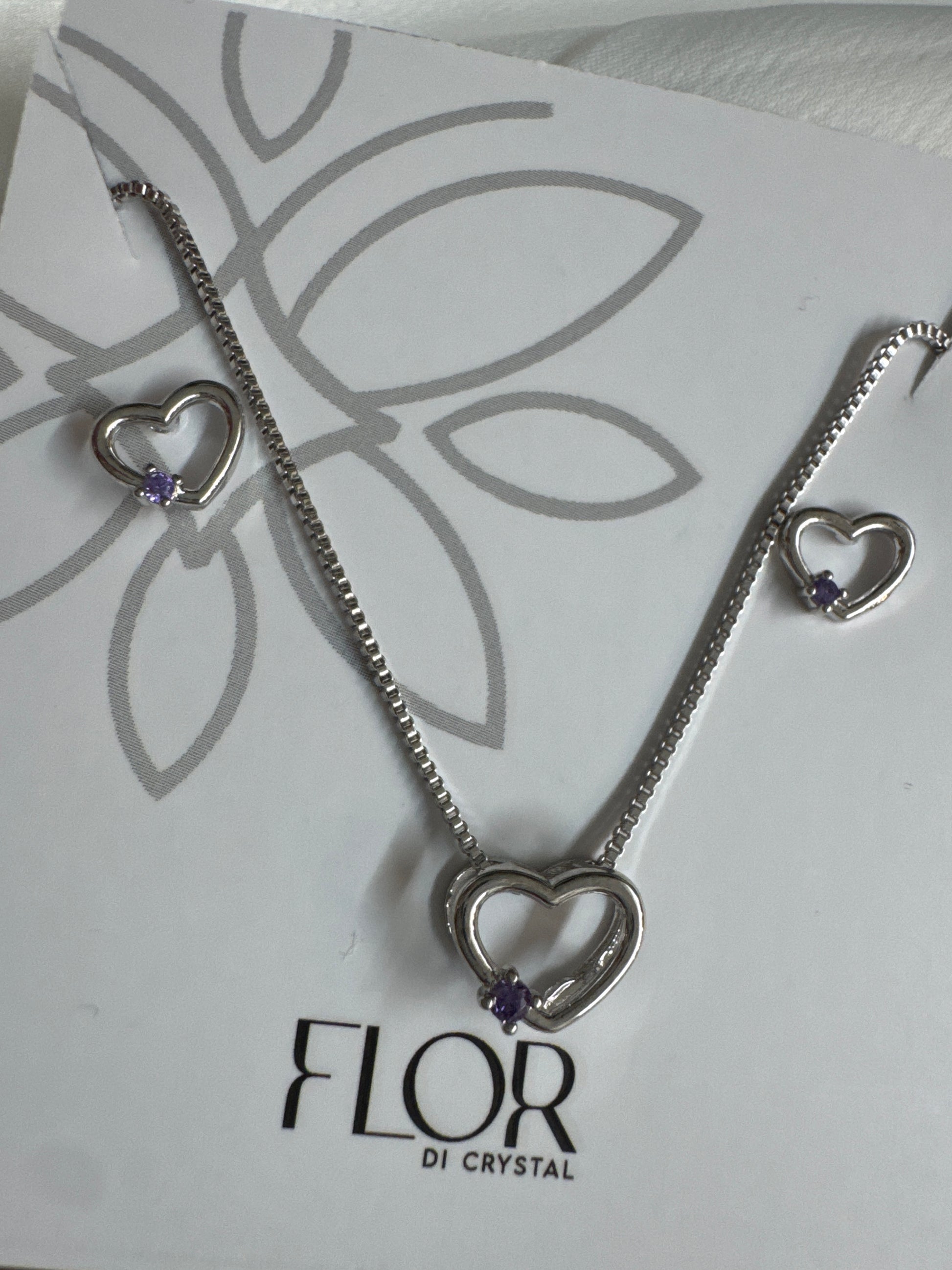 Conjunto delicado de coracao vasado cravejado -ROXO