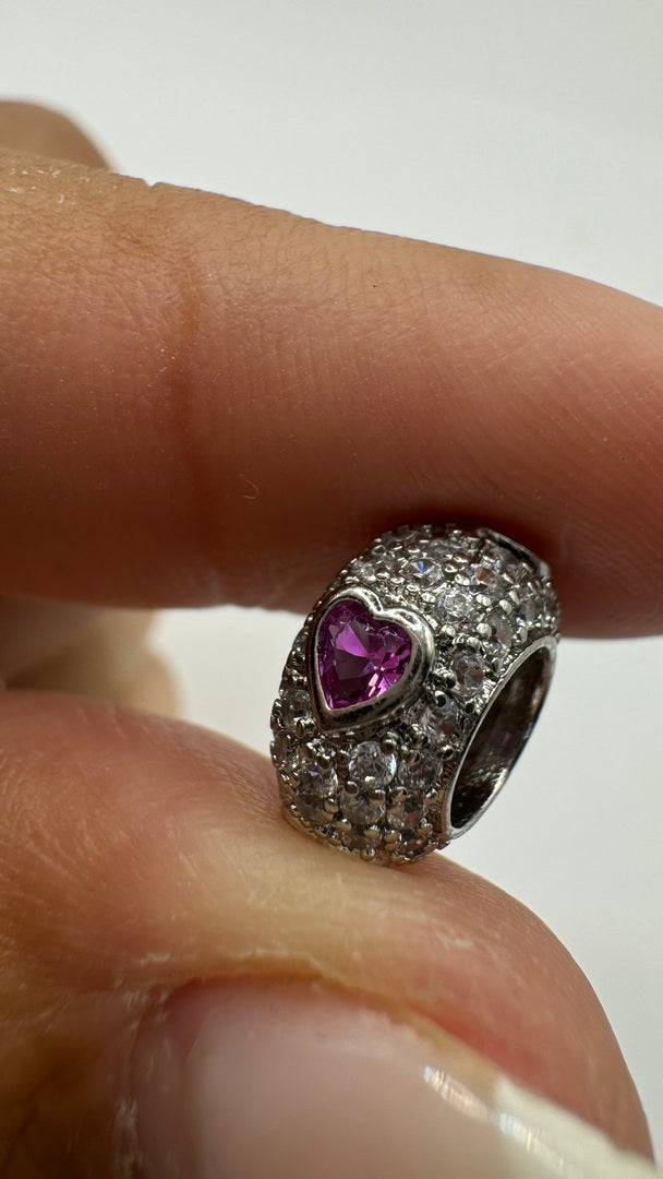 Pingente - Separador para Bonequinhos- Cravejado crystal com coracao rosa