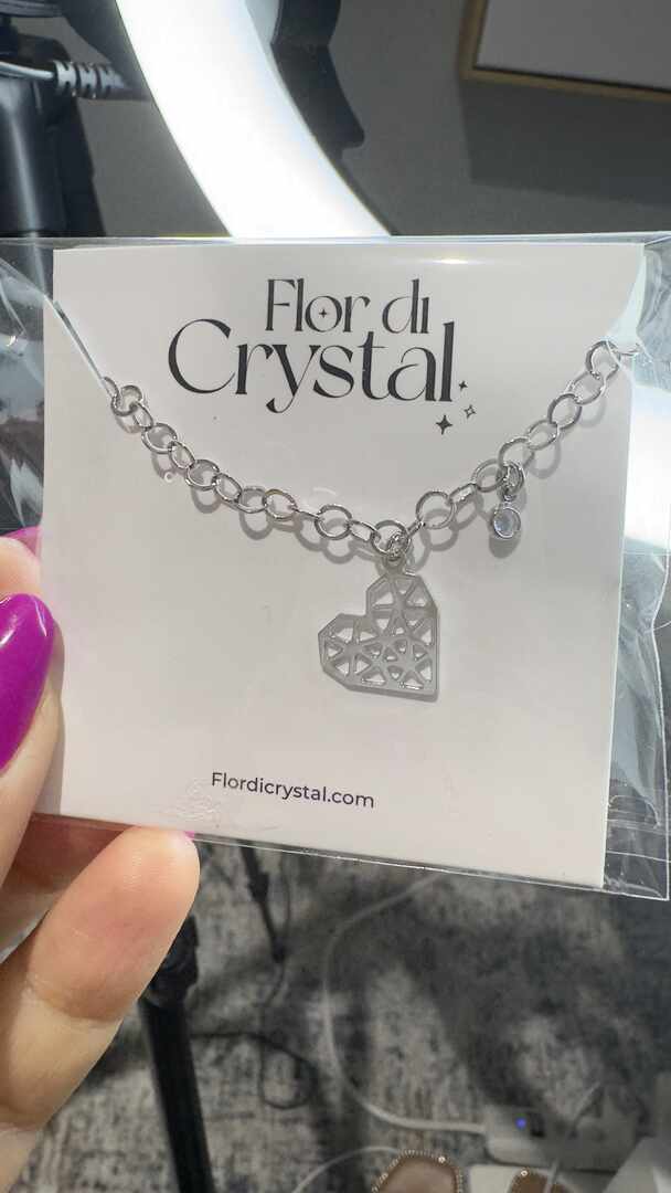 Pulseira de elo portugues com ponto de luz e coracao geometrico-rodio
